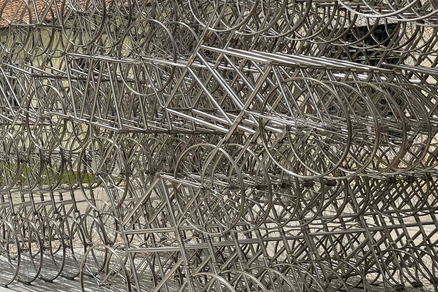 Wiek XXI źle się zaczął. Paniką zer i paniką w internecie. Wielu ogarnął lęk, że po północy, w pierwszych sekundach nowego 2000 roku cała nadzieja, jaką wielu pokładało w komputerach, nagle przez jakieś tam problemy z cyframi legnie w gruzach i wylądujemy tam, gdzie wcześniej, czyli przy maszynach analogowych i bez cyfrowej rewolucji. Wielu zarobiło na tej panice spore pieniądze, wielu miało nerwowego sylwestra. A tu nic się nie stało, panika była przesadzona. Potem jednak było gorzej: atak terrorystów na Nowy Jork, jak z filmu (dzisiaj nadal wielu nie wierzy, że w ogóle nastąpił), kryzys 2008 roku oraz bardzo wiele innych zdarzeń – włącznie z ostatnią paniką Covid-19. Zwiększyło się tempo życia, tzw. ciśnienie, przez które powoli przestajemy wiedzieć, po co biegniemy. A to przecież nasze życie. Powinniśmy wiedzieć sami, czy warto, czy to ma sens, czy coś tracimy i co jest ważne. Jest niedzielne popołudnie, gorący lipcowy dzień w Lizbonie. Za późno, aby jechać na plażę. Może jakiś inny pomysł? Sięgam do kalendarza, a tam zapisane: „Ai Weiwei”. Znajomy kolekcjoner sztuki, kiedyś będąc u mnie w odwiedzinach, zamiast wina przyniósł mi album chińskiego artysty, z informacją, że właśnie wraca z otwarcia jego wystawy. Oczywiście miał selfie z Ai Weiweiem – zazdroszczę! Wsiadam do samochodu i jadę. Długi budynek Cordoaria Nacional i potężna srebrna instalacja z ram rowerów daje przedsmak, że będzie to uczta, uczta wrażeń.